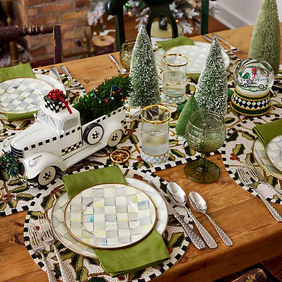 Agregue el festivo y fresco arbol de Escobillas para Botellas Small Farmhouse a sus mesas festivas. Se presenta sobre una base tridimensional de estrella Courtly, acentuada con bolas doradas en las puntas. Muestrelo con el cepillo para botellas mediano Farmhouse y el cepillo para botellas grande Farmhouse para agregar un deleite dimensional a sus exhibiciones navidenas.