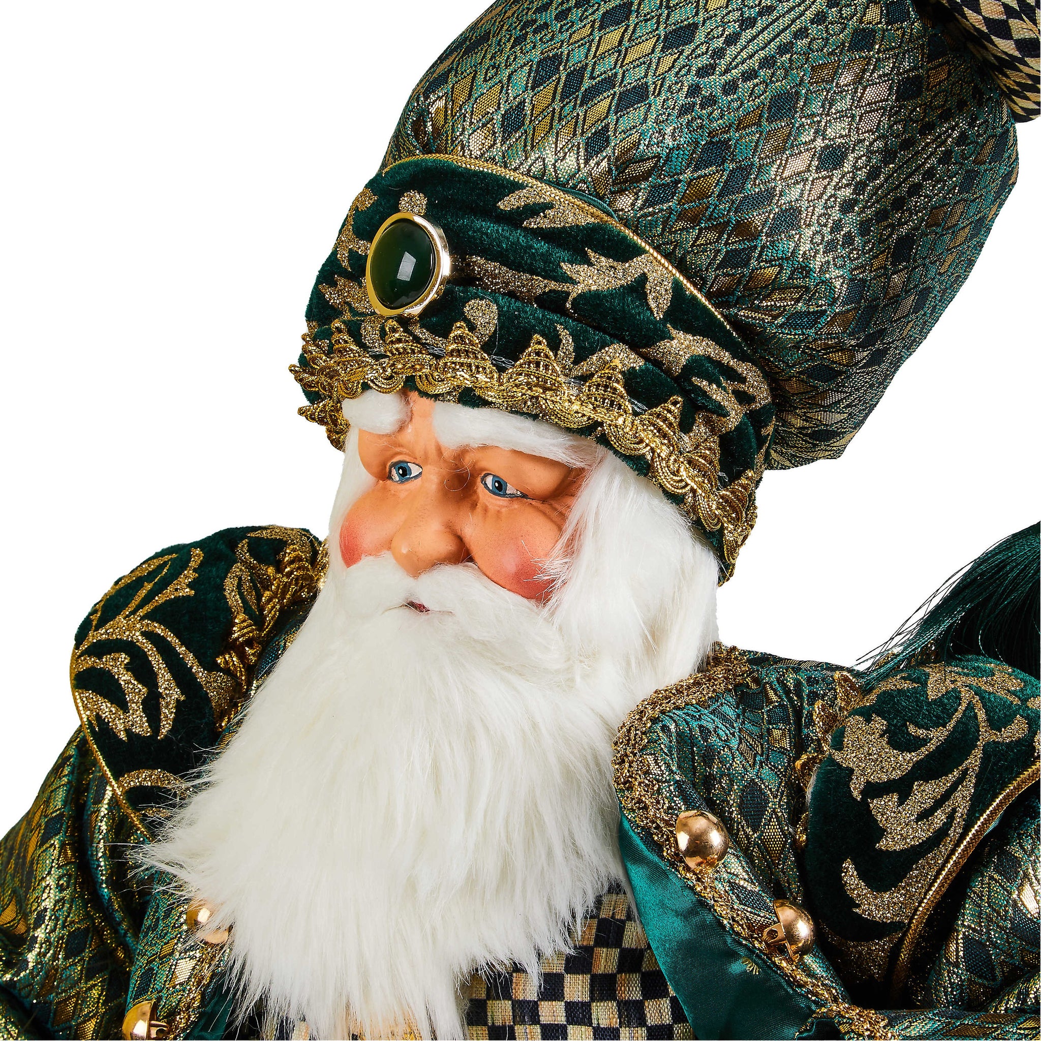 Deléitate con los detalles de este Papá Noel hecho y pintado a mano, vestido de pies a cabeza de verde esmeralda y cuadros Courtly Check®. Lleva pantalones con estampado de arlequín con brillantina, rematados con un chaleco Courtly Check y un abrigo de brocado verde esmeralda. El toque final es un gorro de brocado y cuadros Courtly Check de gran tamaño adornado con una borla verde esmeralda. Coloca esta figura especial en un lugar donde reciba toda la atención que se merece.