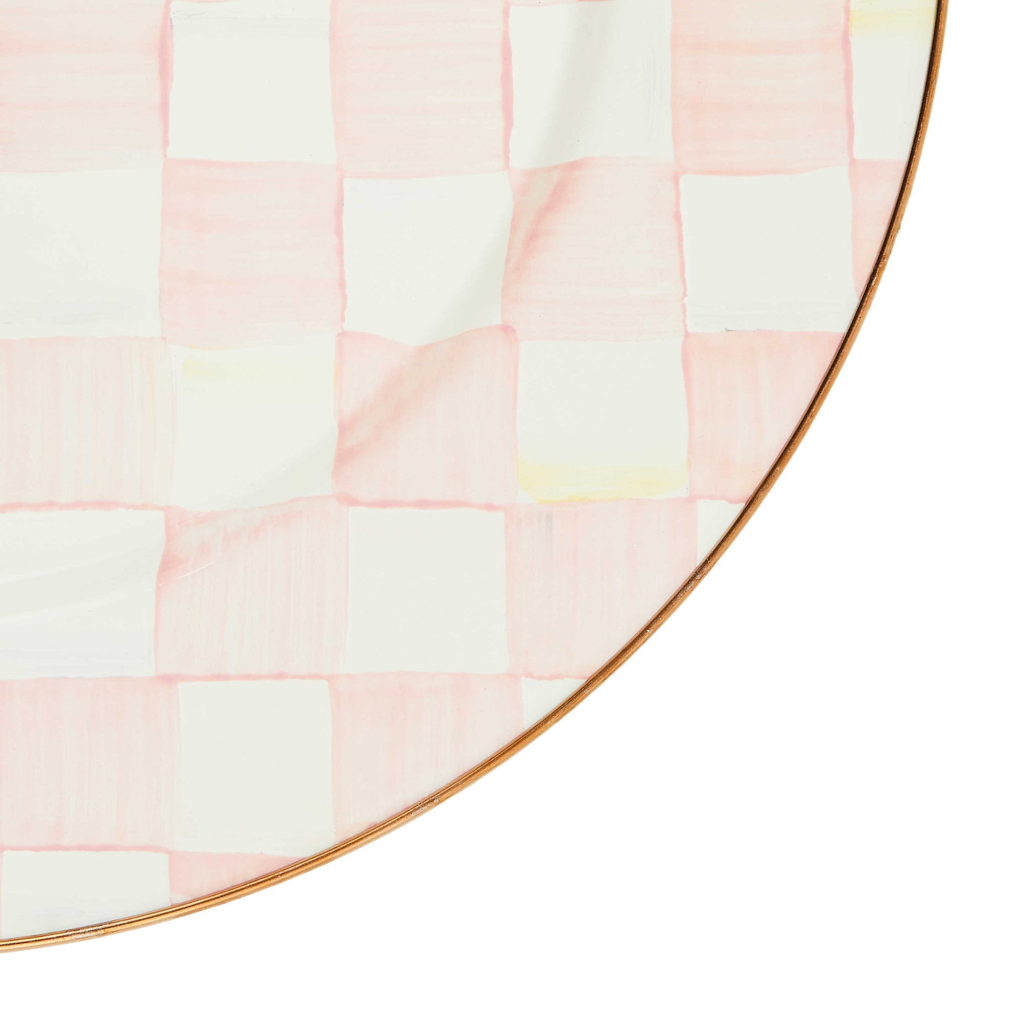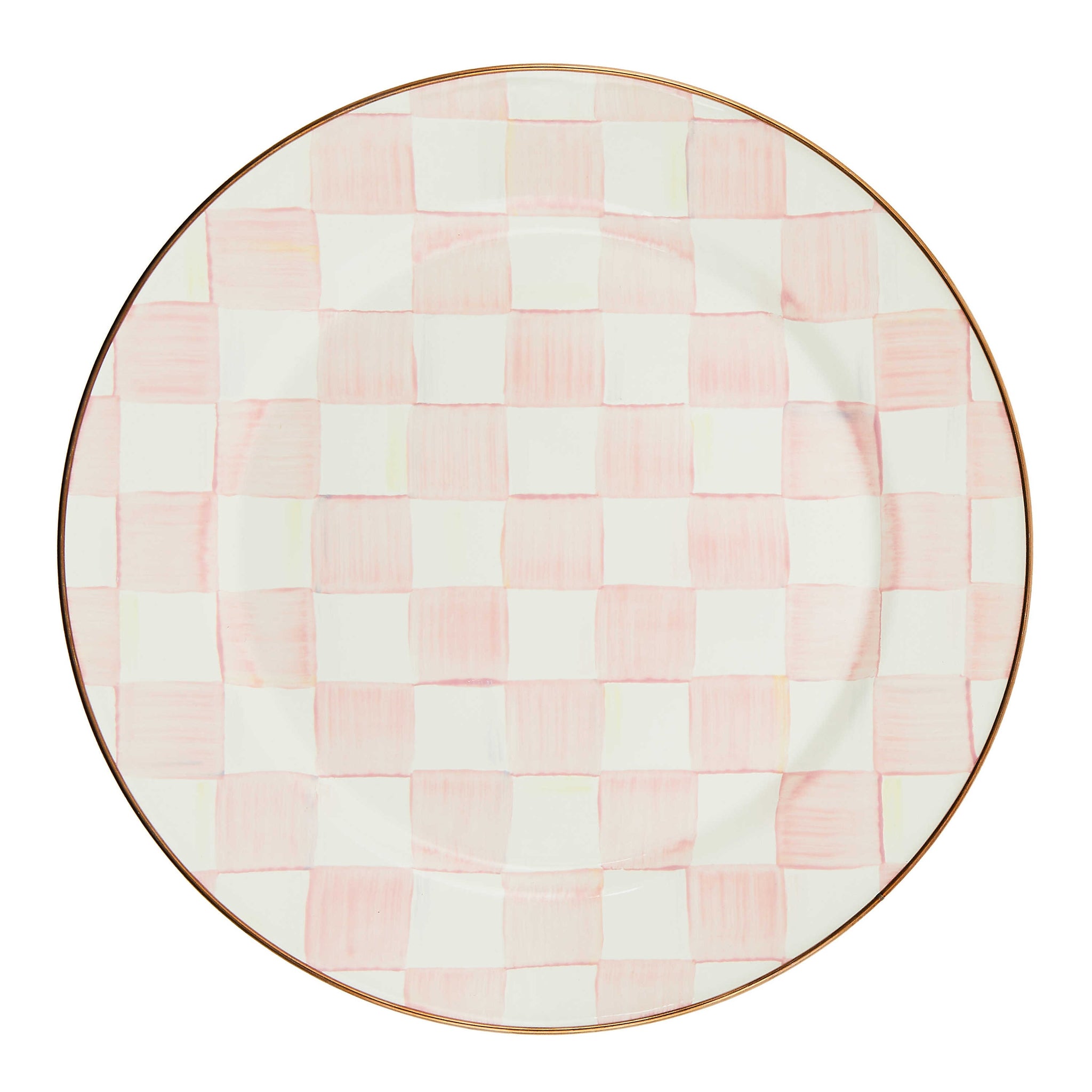 Establece un lugar en la mesa para nuestro cargador/plato Rosy Check. De tematica similar a nuestro caracteristico patron esmaltado Courtly Check®, Rosy Check marca todas nuestras casillas. Es bonito, rosa y clasico. Los bajos de acero de gran espesor estan vidriados con cuadros pintados a mano y dibujados con colores en una gama de tonos rosados y bordeados en acero inoxidable bronceado.
